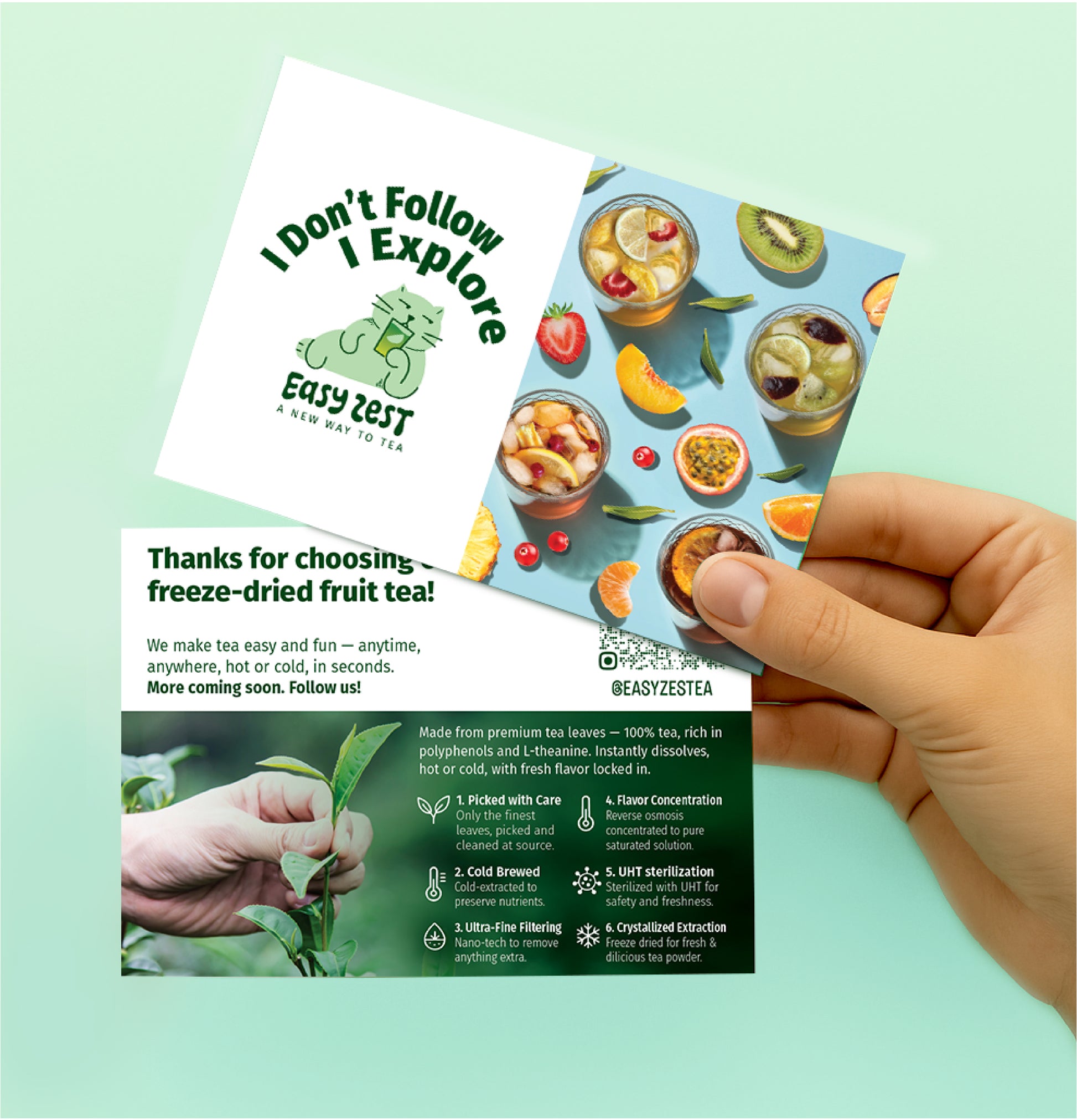 Freeze-dried jasmine green tea powder (15%), freeze-dried kiwi powder, freeze-dried apple powder, freeze-dried kiwi, freeze-dried plum, freeze-dried lime, natural sweetener stevia (0.6%).